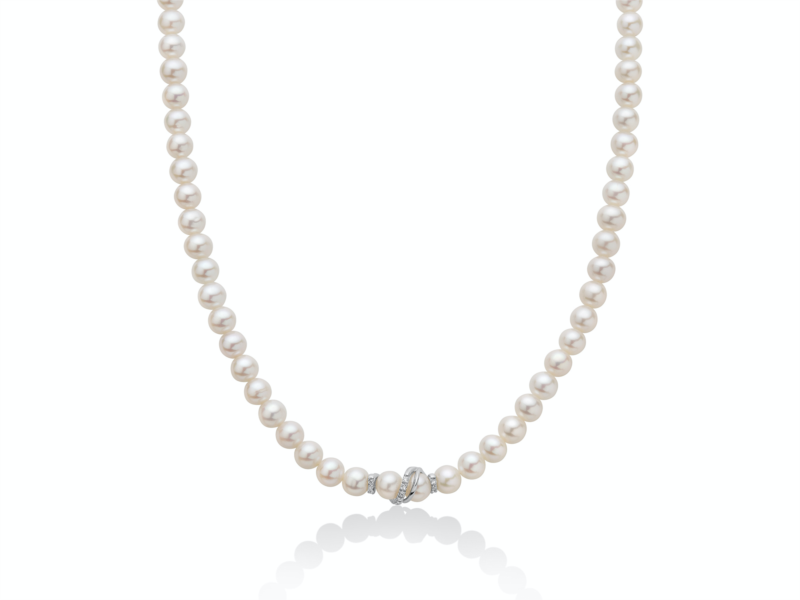 Collana donna miluna, Pcl3726v, collezione Perle Boule E Fantasia. Oro 750/1000 Nr 12 Diamanti naturali Pt.tot 7, 2 Col.G Pur.SI Taglio Brillante Rotondo Fl 1 Perle MR Col.