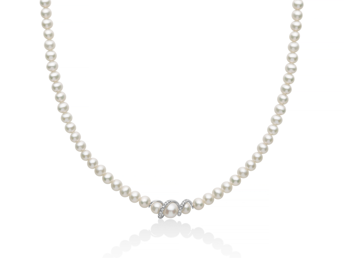 Collana donna miluna, PCL6400, collezione perle boule e fantasia Oro 750/1000 Nr 2 Diamanti naturali Pt.tot 0, 8 Col.G Pur.SI Taglio Brillante Rotondo Fl 1 Perle vere MR Col.