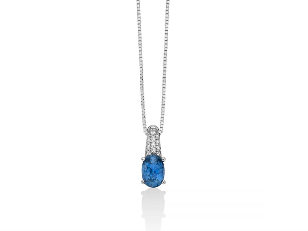 Collana donna miluna, CLD4535, collezione premium gemme Oro 750/1000 Nr 12 Diamanti naturali Pt.tot 6 Col.G Pur.SI Taglio Brillante Rotondo Nr 1 Zaffiro nat.