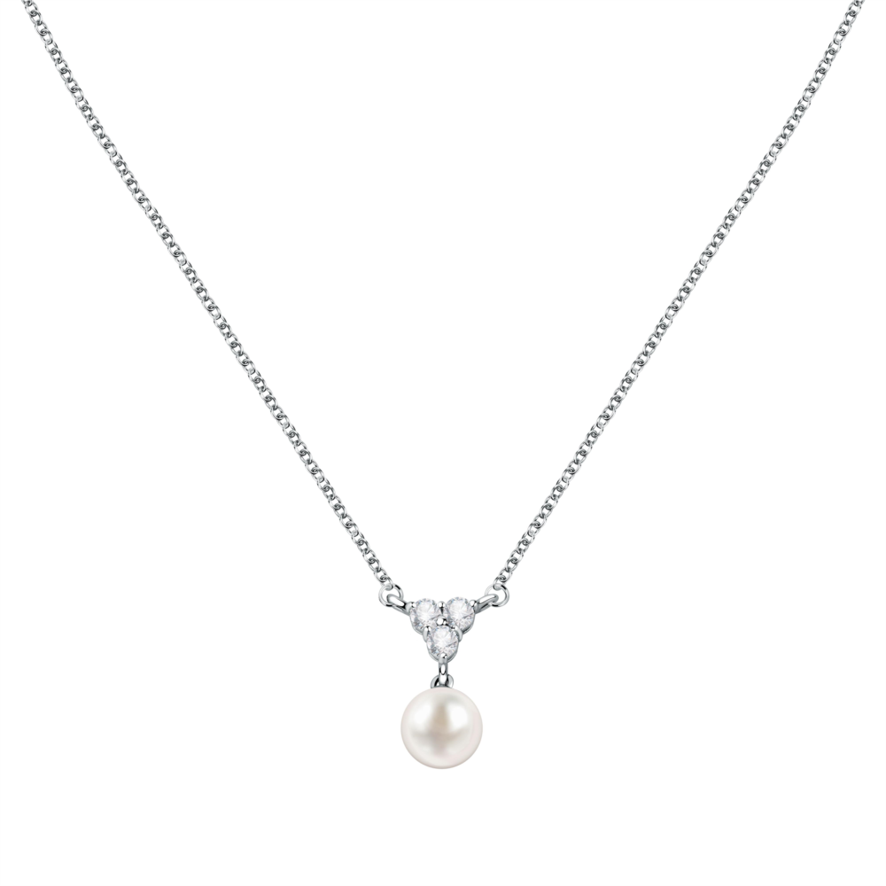 Collana donna morellato, SAER50, collezione perla, in argento 925 con zirconi e perle, lunghezza 42cm regolabile