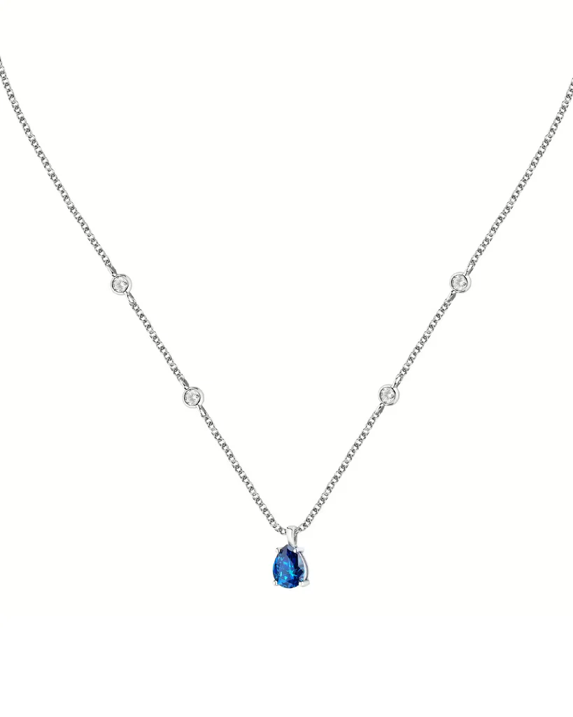 Collana donna morellato, SAIW191, collezione tesori, in argento 925‰ rodiato con un ciondolo impreziosito da uno zircone di colore blu e da 4 zirconi bianchi con castone a cipollina sulla catenina.
