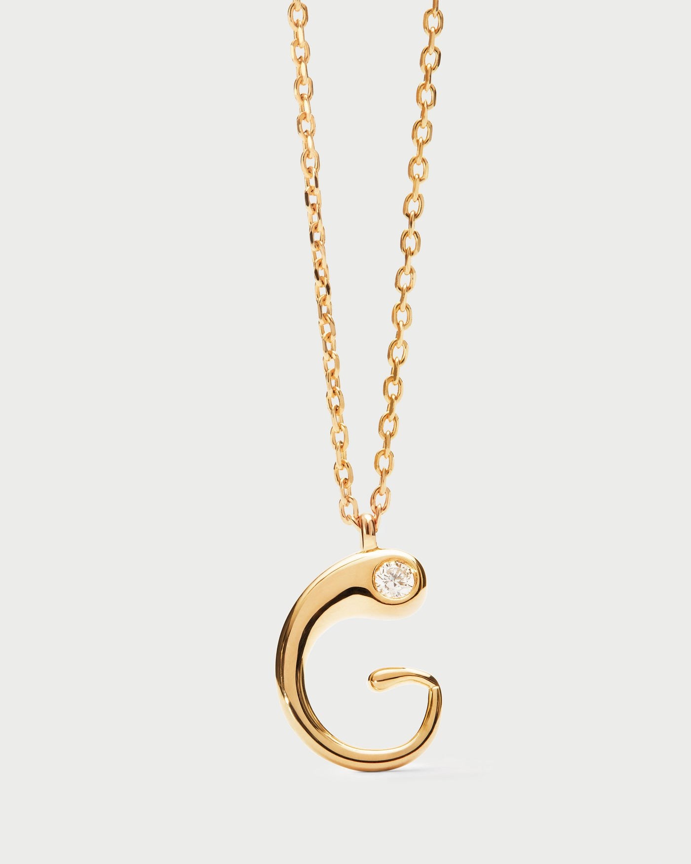 Collana donna pdpaola, CO01-B80-U, collezione iniziali, in argento con placcatura in oro con lettera G pendente e zircone.