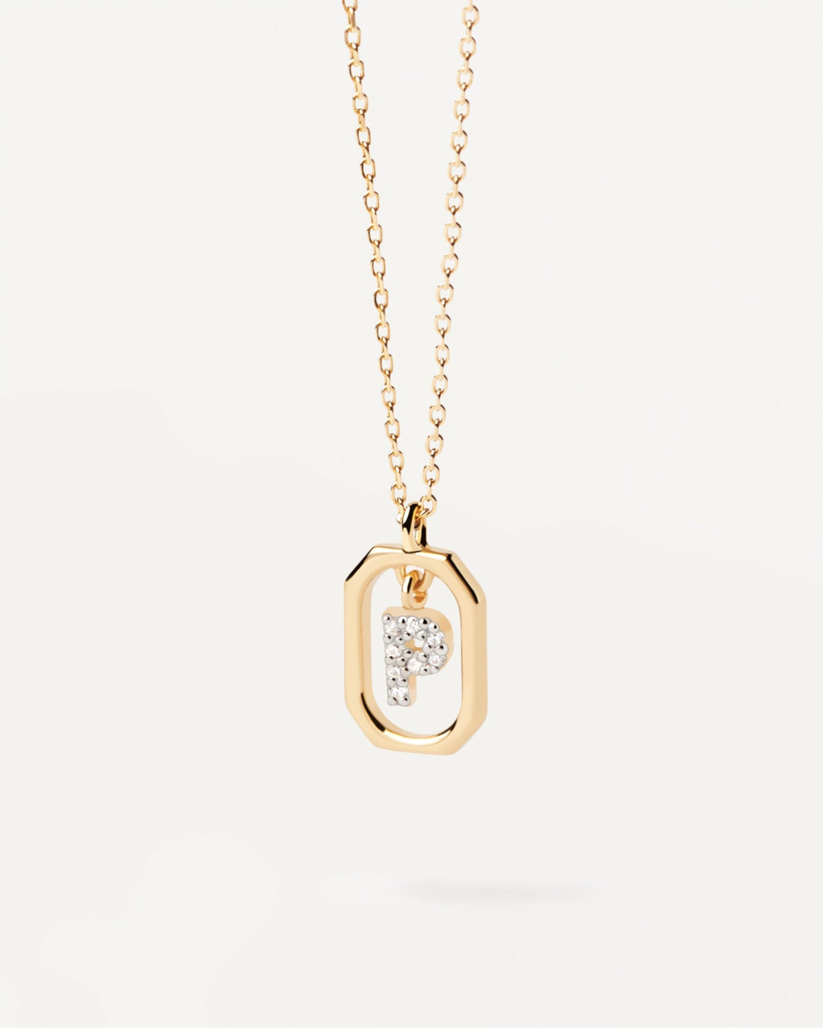 Collana donna pdpaola, CO01-527-U, collezione the new letters, in argento 925 placcato in oro 18kt e zirconi, lunghezza regolabile da 40cm a 50cm