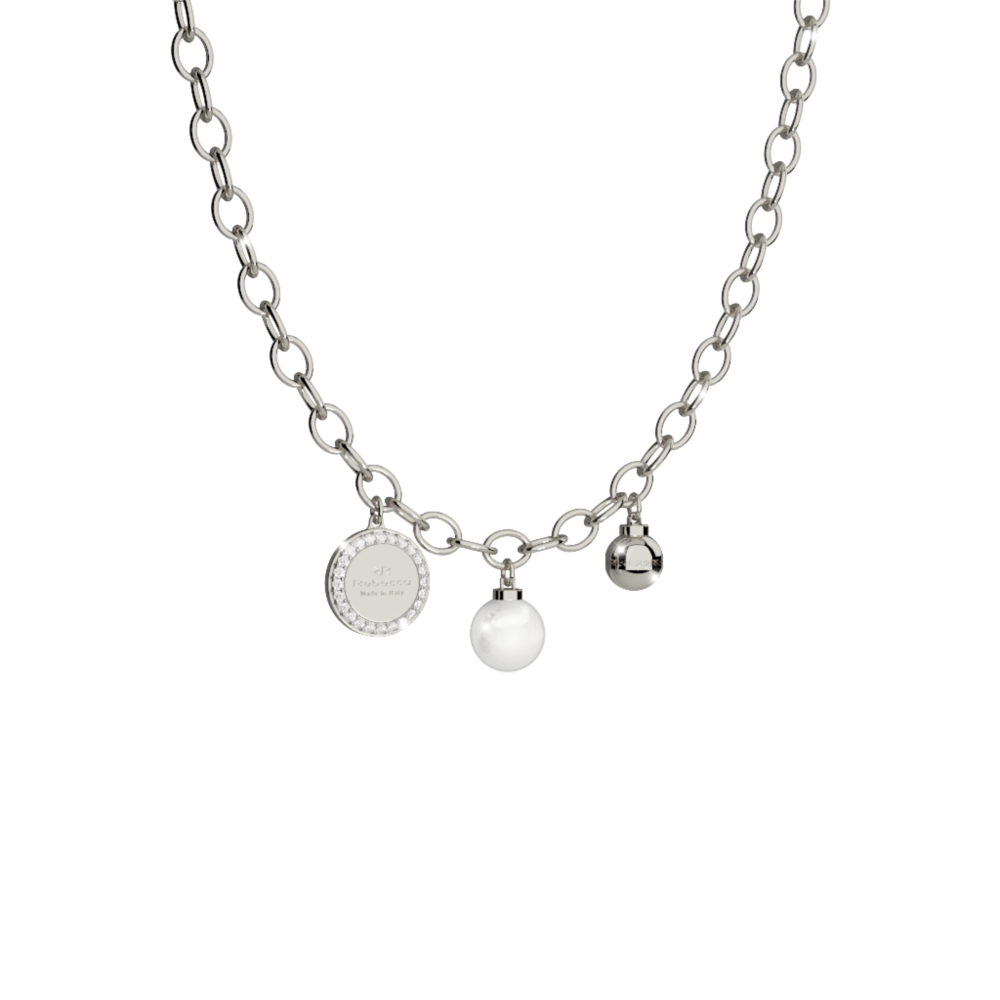 Collana donna rebecca, BHOKBB01, collezione hollywood , in bronzo rodiato con perle e zirconi lunghezza 38/47cm