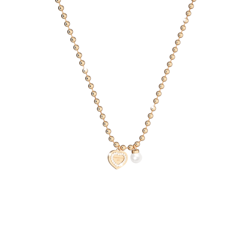 Collana donna rebecca, Bhokoo52, collezione hollywood , in bronzo placcato oro con zirconi e perle 44cm