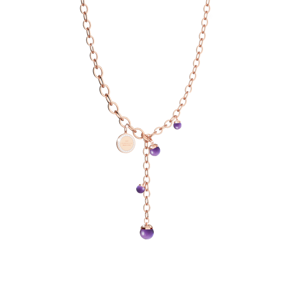 Collana donna rebecca, bhskbt03, collezione hollywood , in bronzo rosato con cristalli di pietra viola lunghezza 38/47