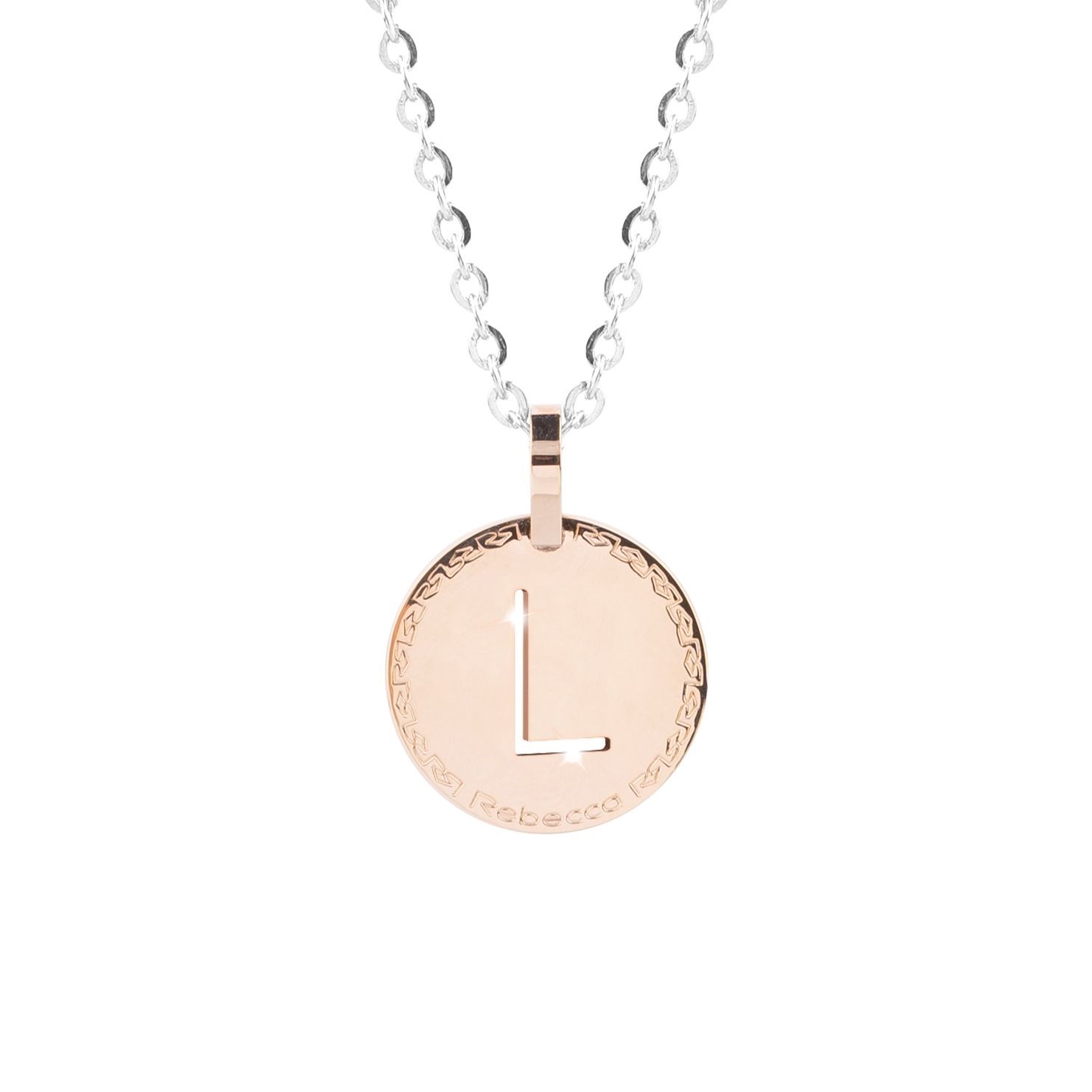 Collana donna rebecca, BWRKRL62, collezione my world alphabet, in acciaio con lettera pendente in bronzo di 2cm, Lunghezza collana 85 cm