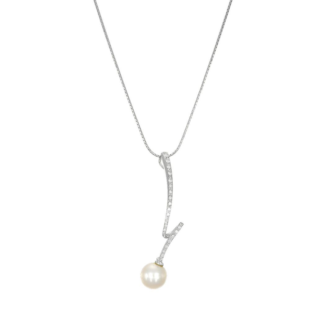 Collana donna recarlo, AD119-B, collezione classici, in oro bianco 18kt con diamanti 0.30ct e perle