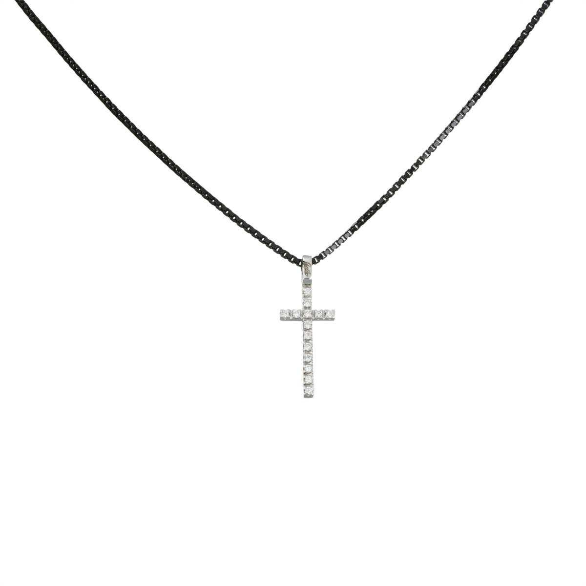 Collana donna recarlo, XE 088/BD, collezione classici, in argento 925 nero con croce in oro bianco 18kt e diamanti 0.11ct