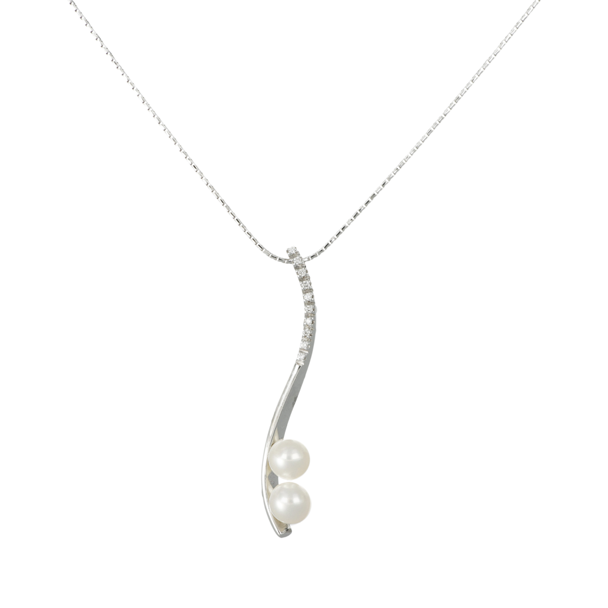 Collana donna recarlo, AD 274/B, collezione classici, in oro bianco 18kt con diamanti e perle