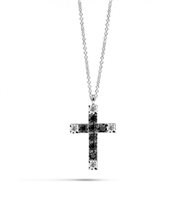 Collana uomo recarlo, P39CR882/KX010, collezione facecube, in oro bianco 18kt con diamanti bianchi 0, 03ct e diamanti neri 0, 07ct dimensione croce 1, 5cm