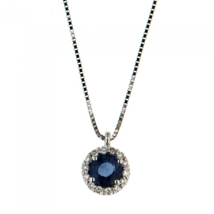 Collana donna recarlo, P33CC244/ZB, collezione primula, in oro bianco 18kt con zaffiro 0, 28ct e diamanti 0, 06ct