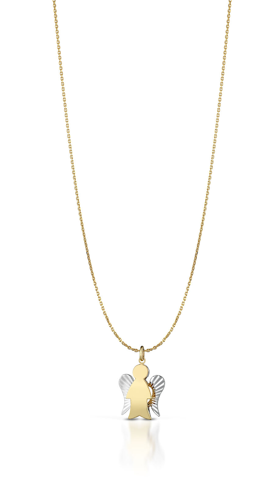 Collana donna roberto giannotti, NKT364, collezione celebration, in oro giallo 9kt/oro bianco 9kt, lunghezza 42/45cm angelo: base 1, 5cm- altezza 2cm