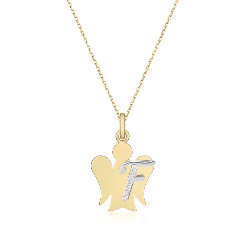 Collana donna roberto giannotti, NKT700F, collezione l'alfabeto degli angeli, in oro giallo 375 con diamanti, ct totale 0, 021, lunghezza 40cm + più 5cm di estensione