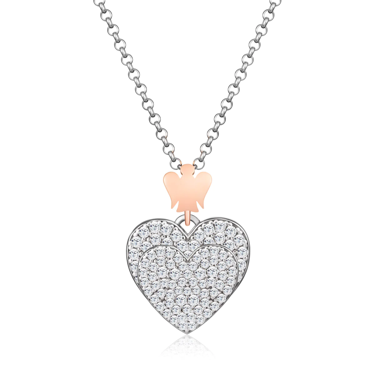 Collana donna roberto giannotti, GIA434, collezione microlighting, in argento 925, angelo in argento 925 rosato e zirconi, lunghezza 40/45cm cuore: base 1, 2 cm - altezza 1, 2 cm angelo: base 0, 5 cm - altezza 0, 5 cm
