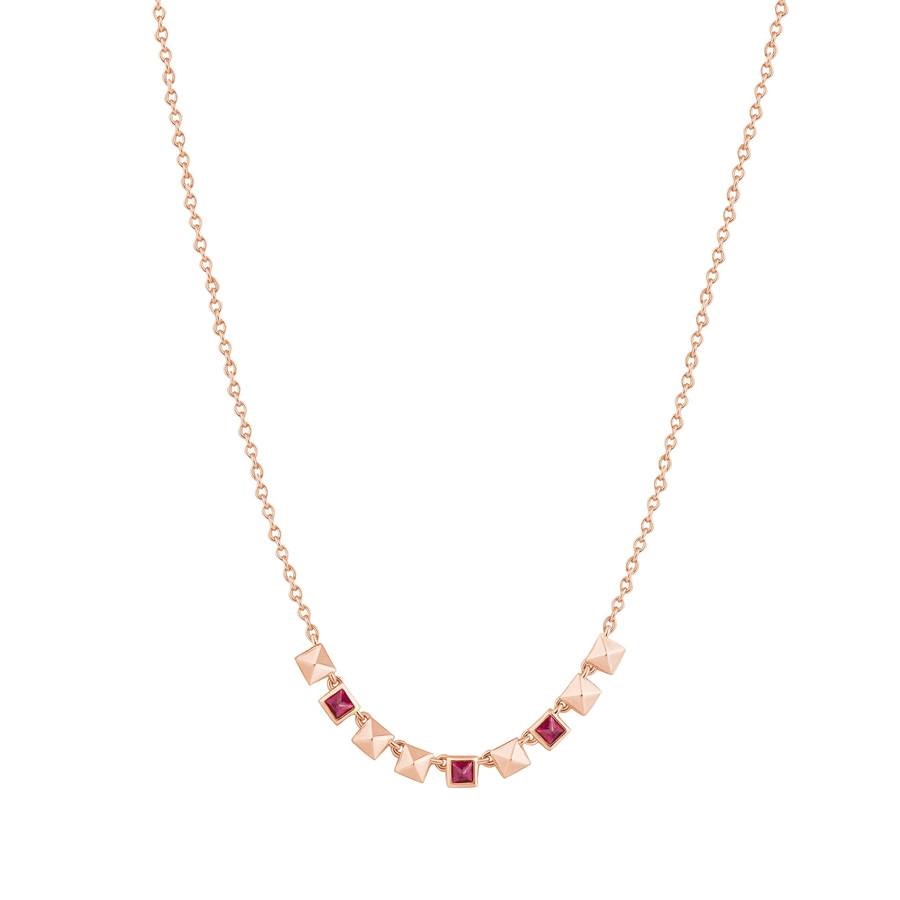 Collana donna rosato, RZCU69, collezione cubica, in argento 925 placcato oro rosa e zirconi, lunghezza 44cm