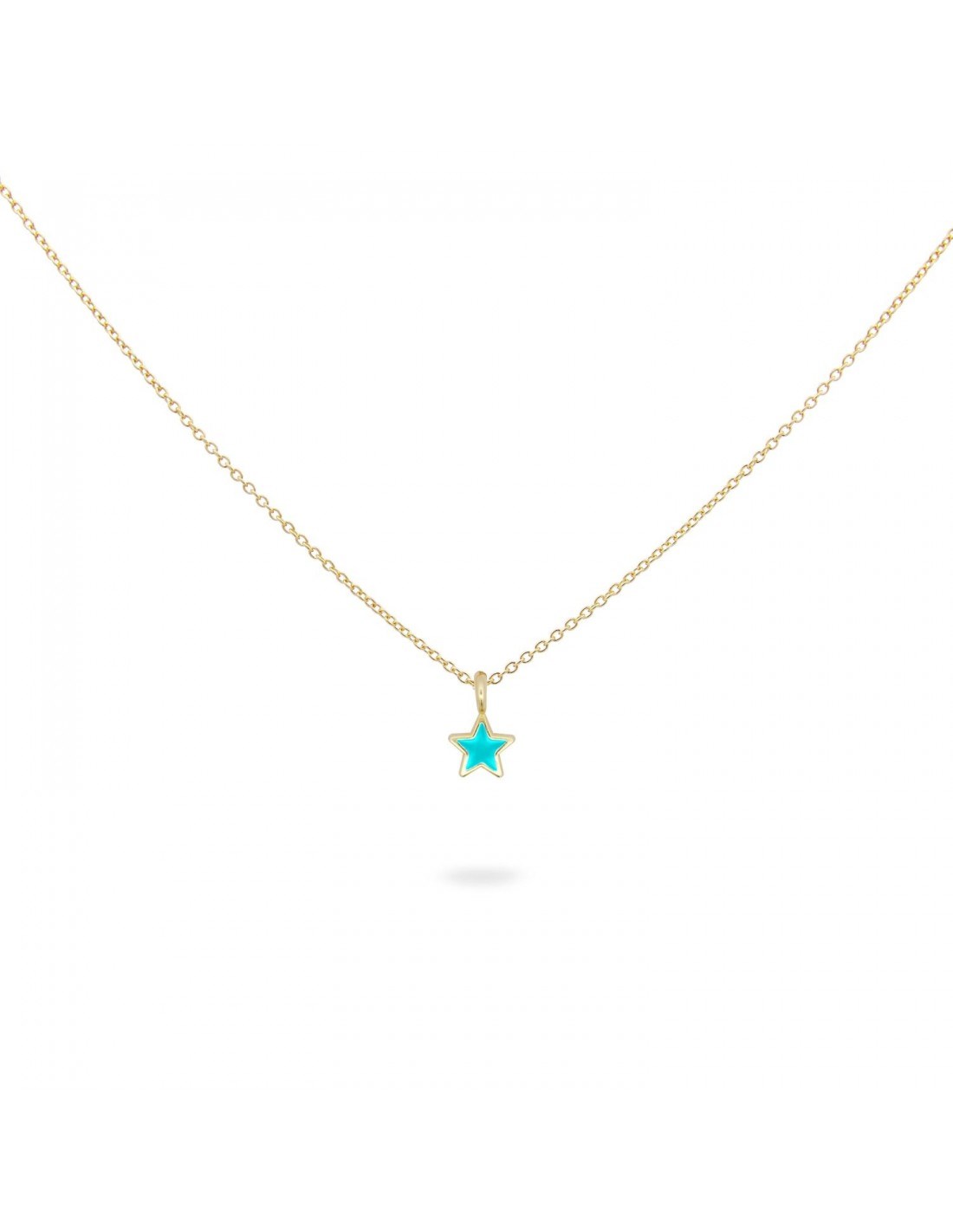 Collana donna rue des mille, GR-023 1STE TU AU, collezione colorfun, in argento 925 dorato con stella smaltata turchese. Lunghezza: 38 cm + 5cm
