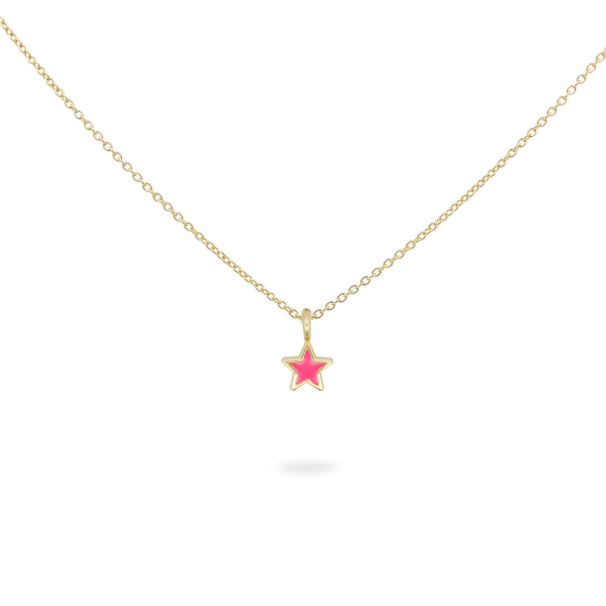Collana donna rue des mille, GR-023 1STE RO AU, collezione colorfun, in argento 925 dorato e stella smaltata fucsia. Misura regolabile da 38 cm a 43 cm con chiusura a moschettone.