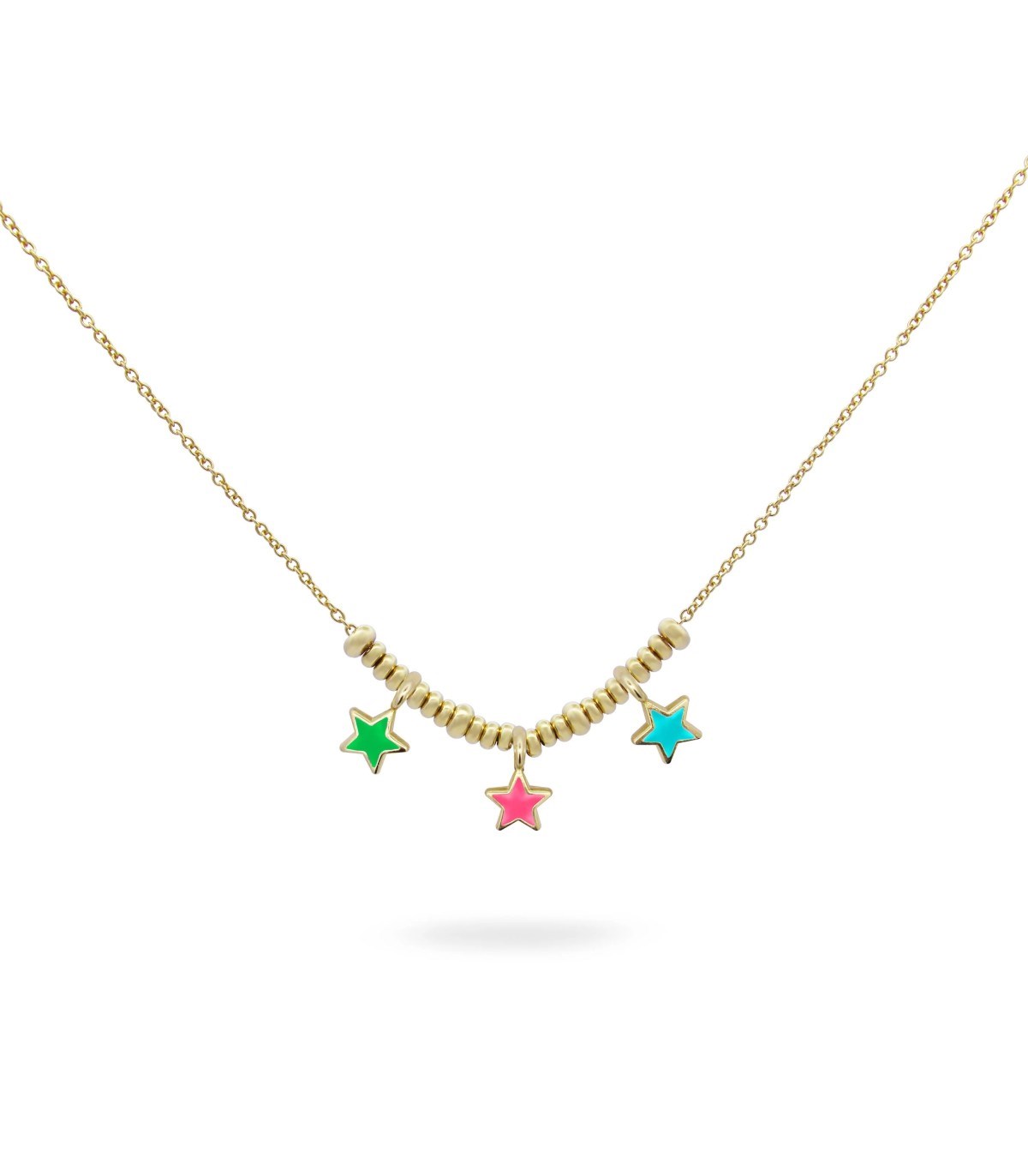 Collana donna rue des mille, GR-023 38TE AU, collezione colorfun, in argento 925 dorato con stellE smaltate. Lunghezza: 38 cm + 5cm