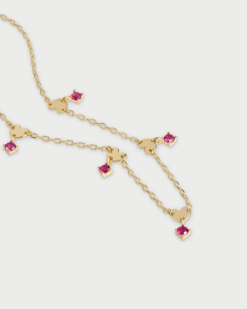Collana donna Rue Des Mille, GRZ-024 5CUO AU, collezione essence, in argento 925 placcato oro giallo 18kt e zirconi rossi, misura 38cm+5cm