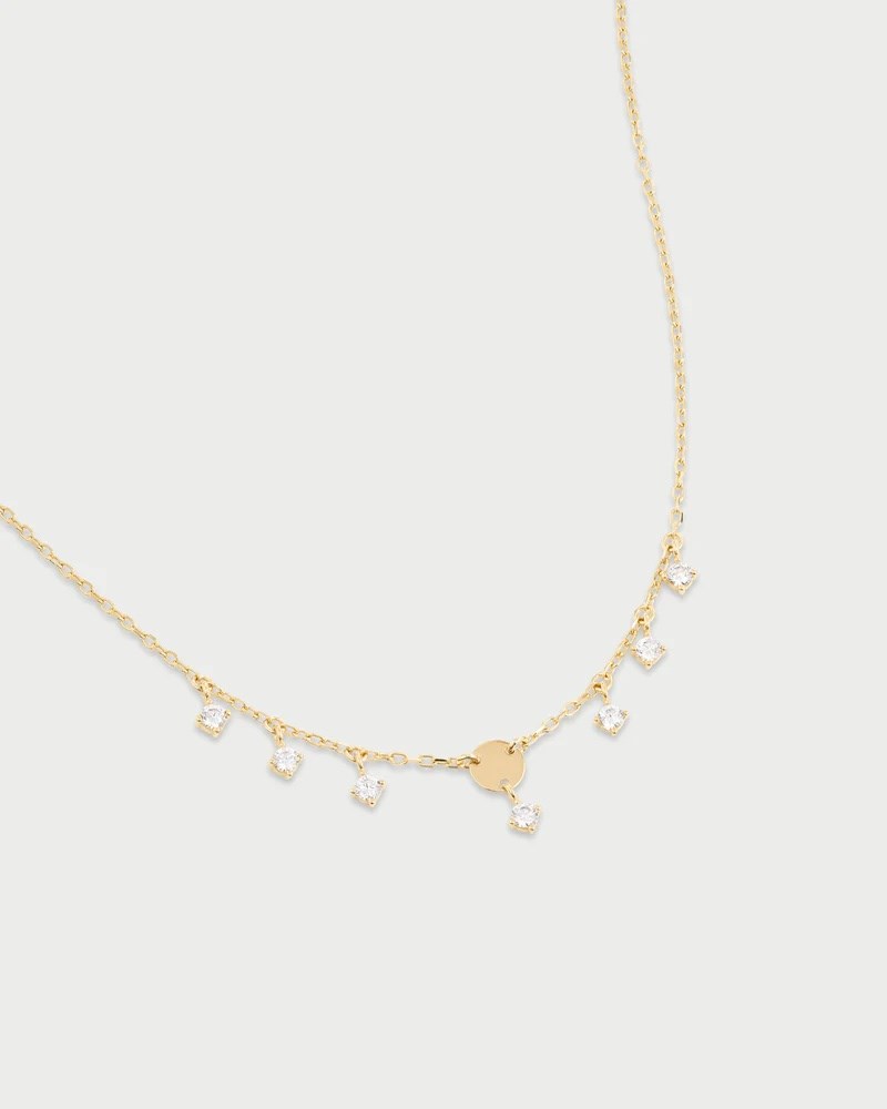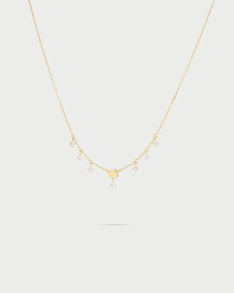 Collana donna Rue Des Mille, GRZ-024 M2 TD AU, collezione essence, in argento 925 placcato oro giallo 18kt e zirconi bianchi, misura 38cm+5cm