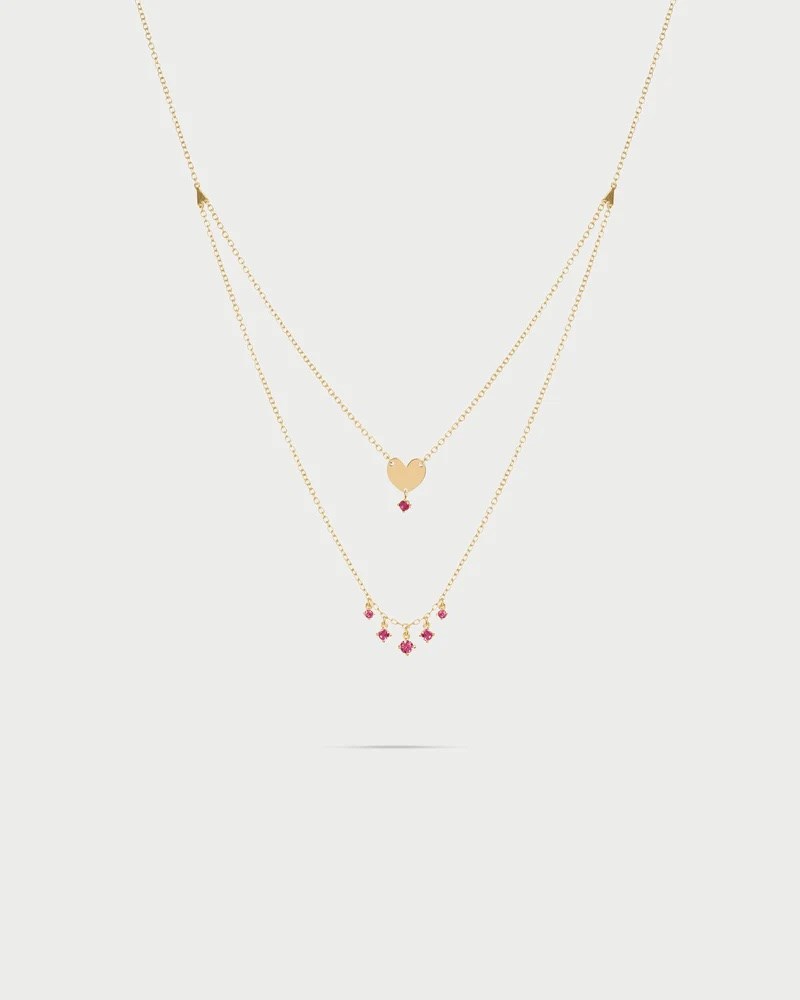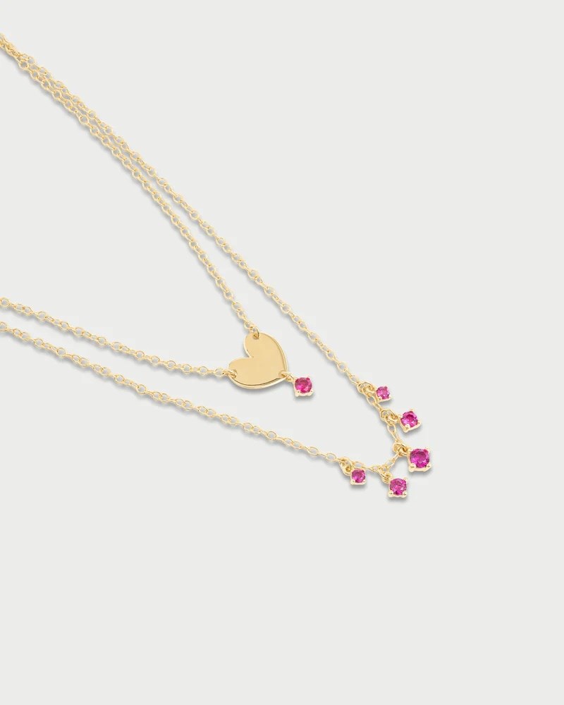 Collana donna Rue Des Mille, GRZ-024 M4 CUO AU, collezione essence, in argento 925 placcato oro giallo 18kt e zirconi rossi, lunghezza 34/38cm+5cm