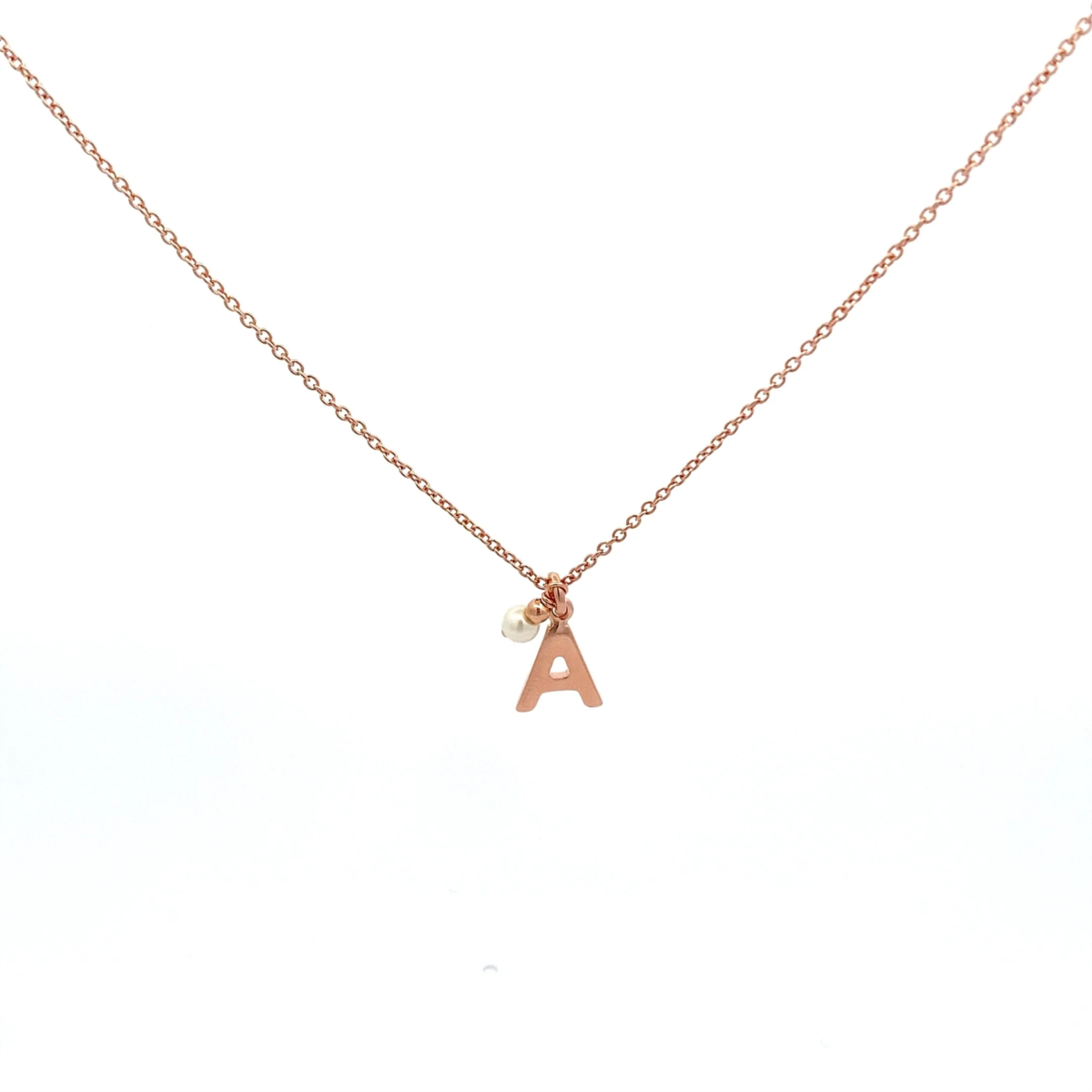 Collana donna Rue Des Mille, GR-LETPE A ROSA, collezione scrivi il tuo nome & alphabet, in argento 925 placcato oro rosa 18kt e perlina, lunghezza 36cm+4cm di estensione