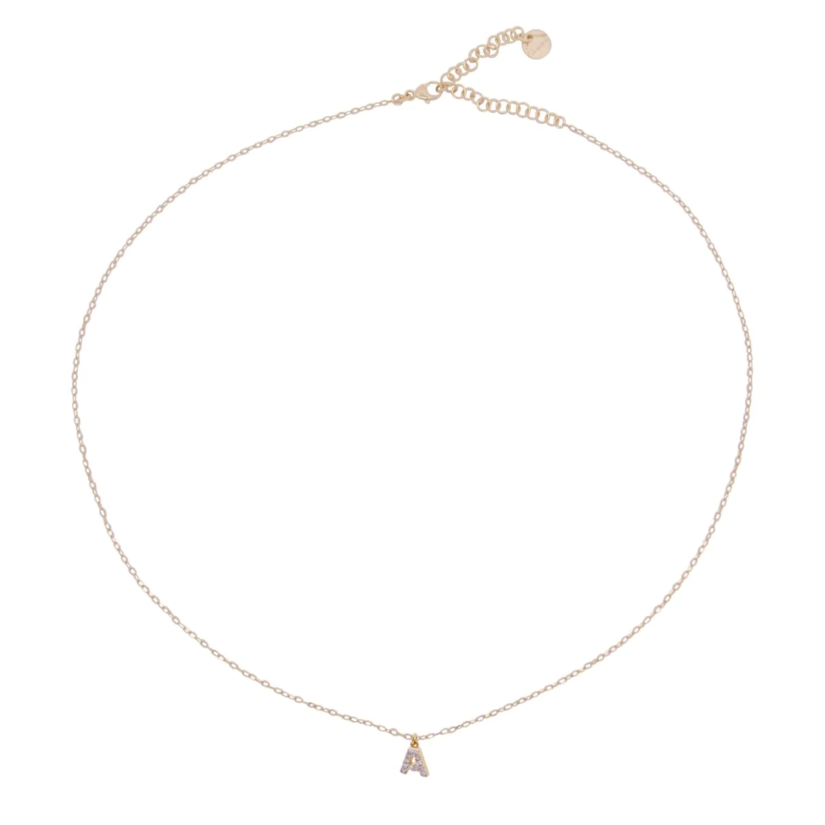 Collana donna Rue Des Mille, GRZ-011 INIZ DORATO A, collezione scrivi il tuo nome & alphabet, in argento 925 placcato in oro giallo 18kt e zirconi, lunghezza 38cm+6cm