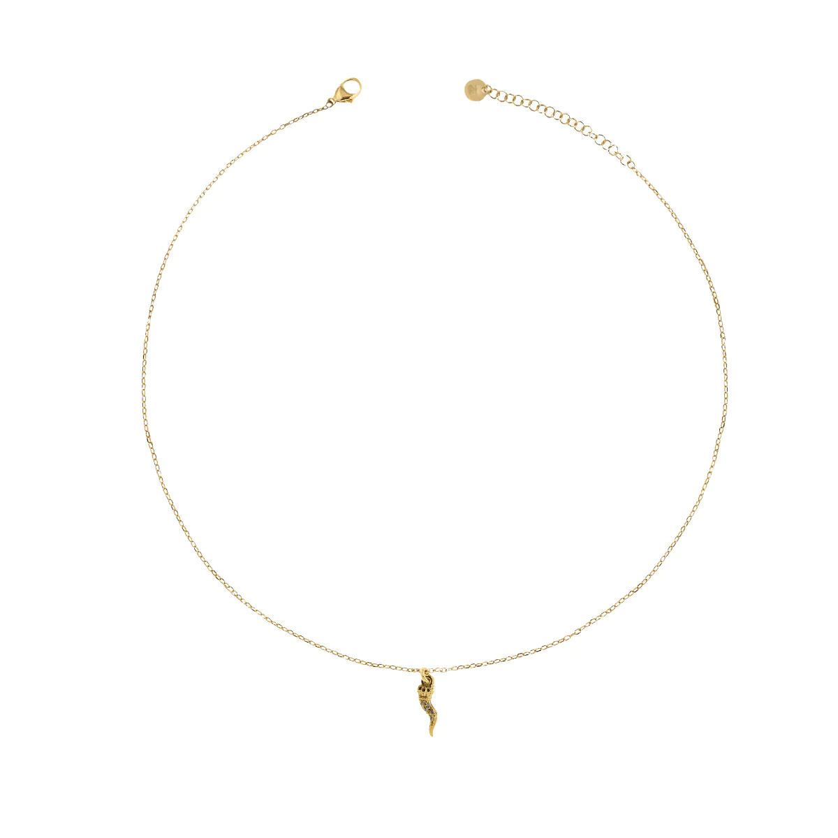 Collana donna Rue Des Mille, GRZ-011 CORNETTO DORATO, collezione stardust, in argento 925 placcato in oro giallo 18kt e zirconi, lunghezza 38cm+4cm di estensione
