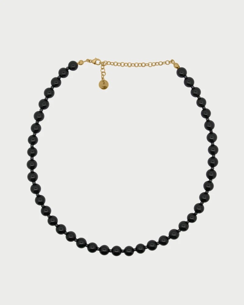 Collana donna rue de mille, CB-GR 11 N, collezione charm bar, in argento 925 placcato oro giallo 18kt e pietre, misura 40cm, diametro sfera 0, 7cm