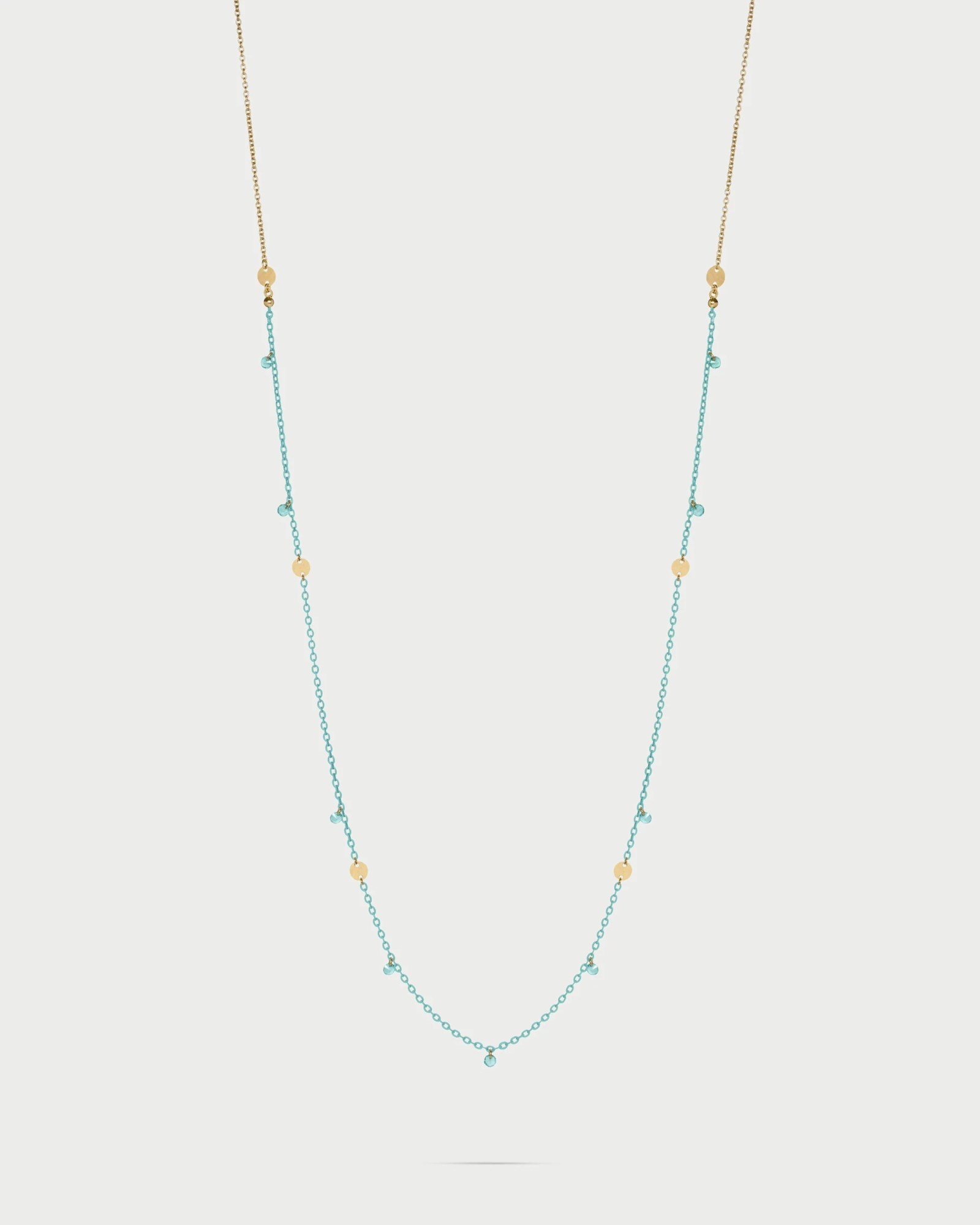 Collana donna rue de mille, CL-031 M1 T AU, collezione gipsy chic, in argento 925 placcato oro 18kt e zirconi colorati, misura 95cm regolabile