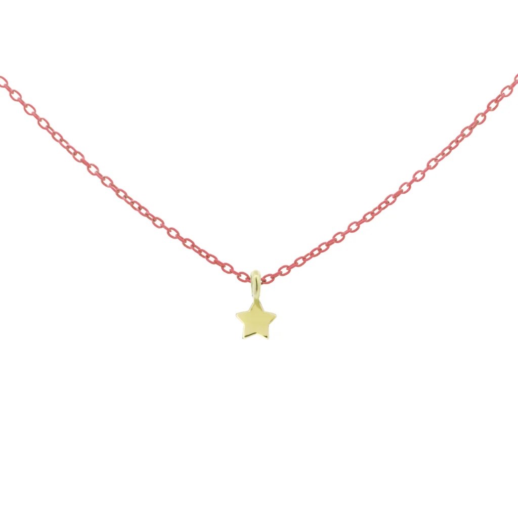 Collana donna rue de mille, 18K-GRV K4 STE, collezione goldenmate, in oro 18 KT e rifinito a mano e catena verniciata rosso mattone su base argento 925, misura 38cm+4cm di estensione