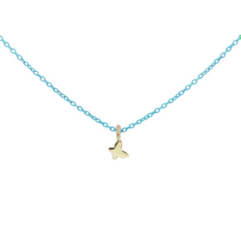 Collana donna rue de mille, 18K-GRV K9 FAR, collezione goldenmate, in oro 18 KT e rifinito a mano e catena verniciata turchese su base argento 925, misura 38cm+4cm di estensione