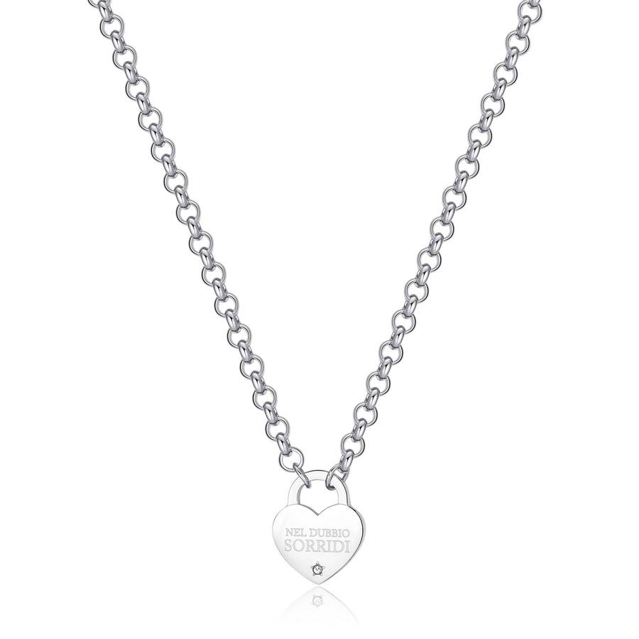 Collana donna s'agapò, Sbm75, collezione be my always, in acciaio, pendente a forma di cuore, lunghezza 46cm