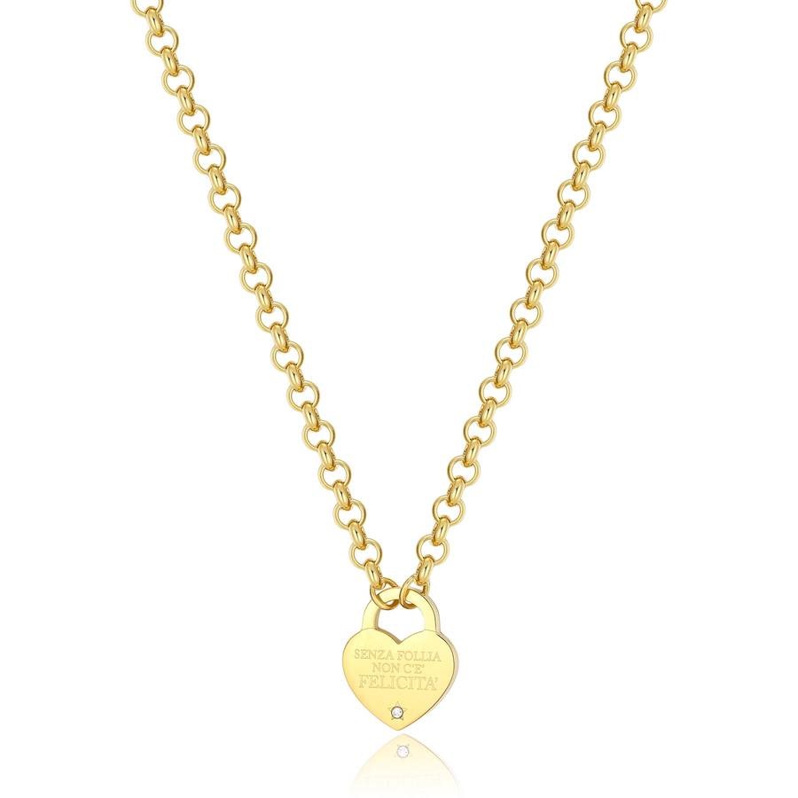 Collana donna s'agapò, Sbm77, collezione be my always, in acciaio dorato con pendente cuore, lunghezza 46cm