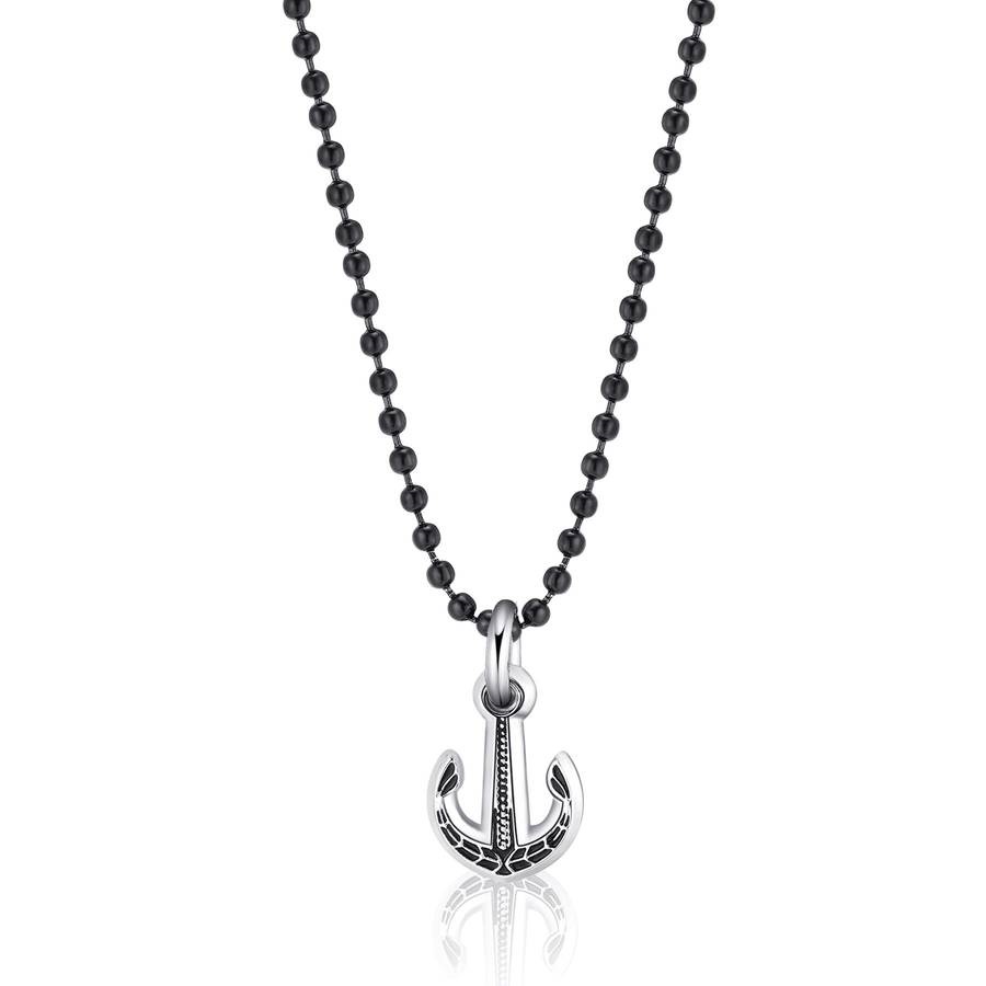 Collana uomo s'agapò, Shs10, collezione charisma, in acciaio/acciaio nero, pendente a forma di ancora e smalto nero, lunghezza 48cm