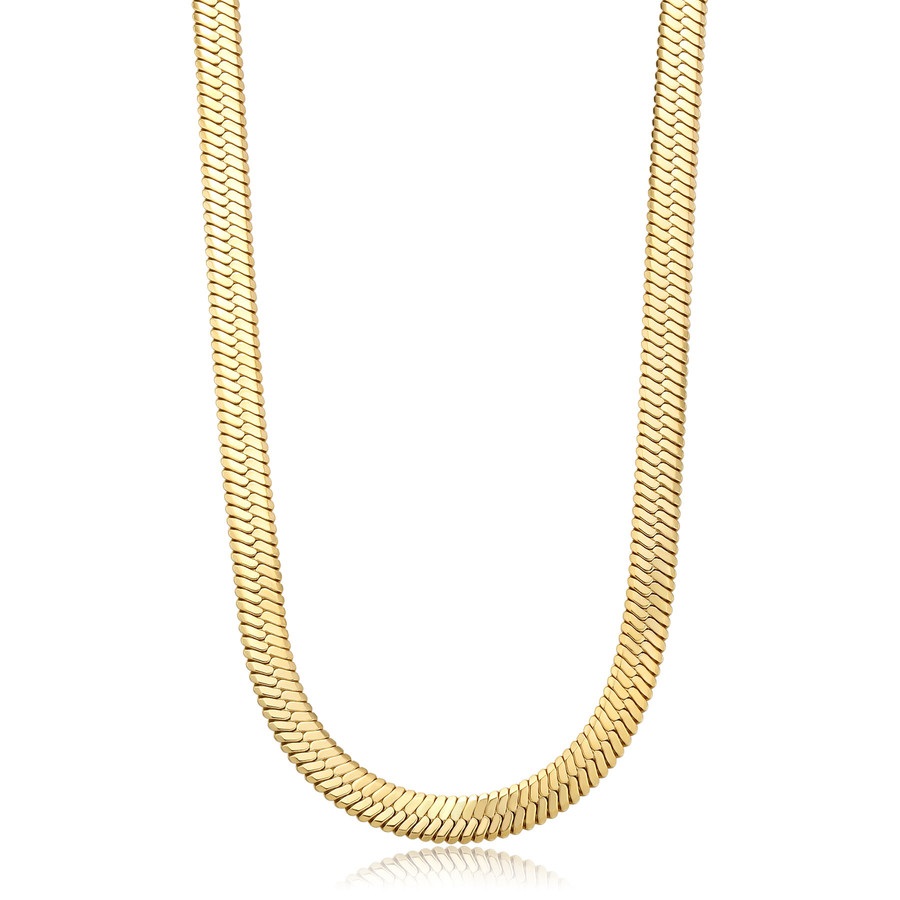 Collana donna sagapò, SHK85, collezione chunky, girocollo in acciaio 316L e finitura pvd oro 14k con catena snake piatta.