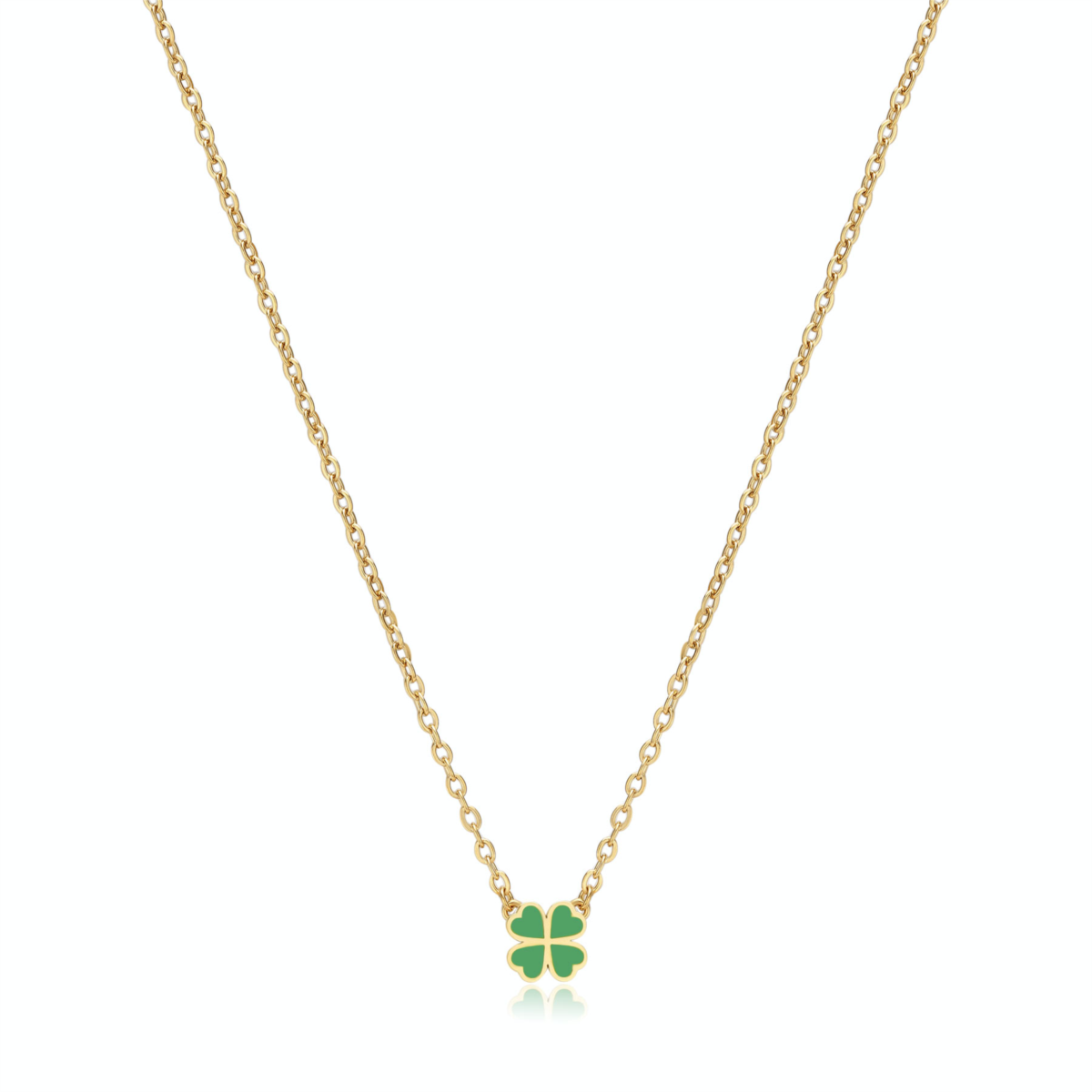 Collana donna sagapò, SCK253, collezione click, in acciaio dorato con pendente smaltato verde, lunghezza 44cm