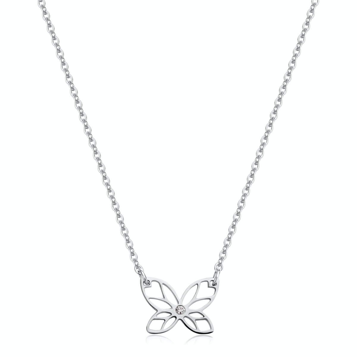 Collana donna sagapò, SCK270, collezione click, girocollo in acciaio 316L con pendente a forma di farfalla e cristallo.