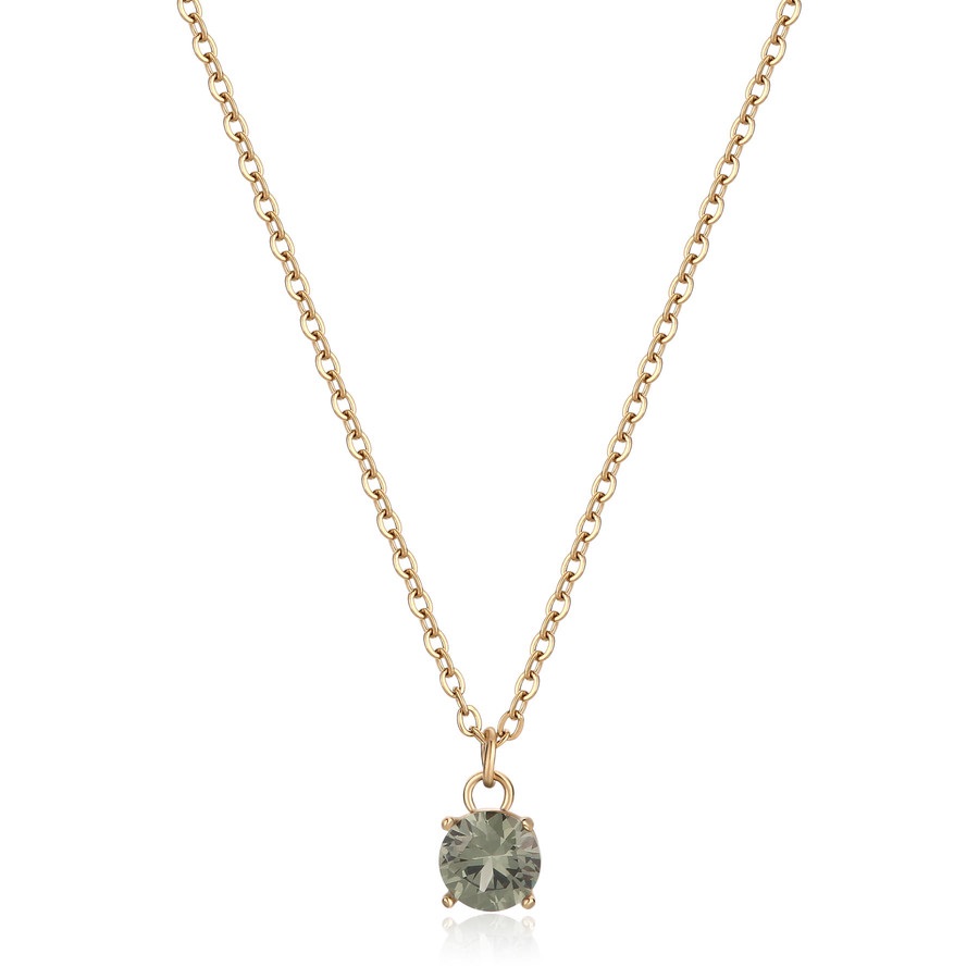 Collana donna sagapò, SDZ06, collezione dazzly, girocollo in acciaio 316L, finitura pvd oro 14K e pendente centrale con cubic zirconia colore chrysolite.