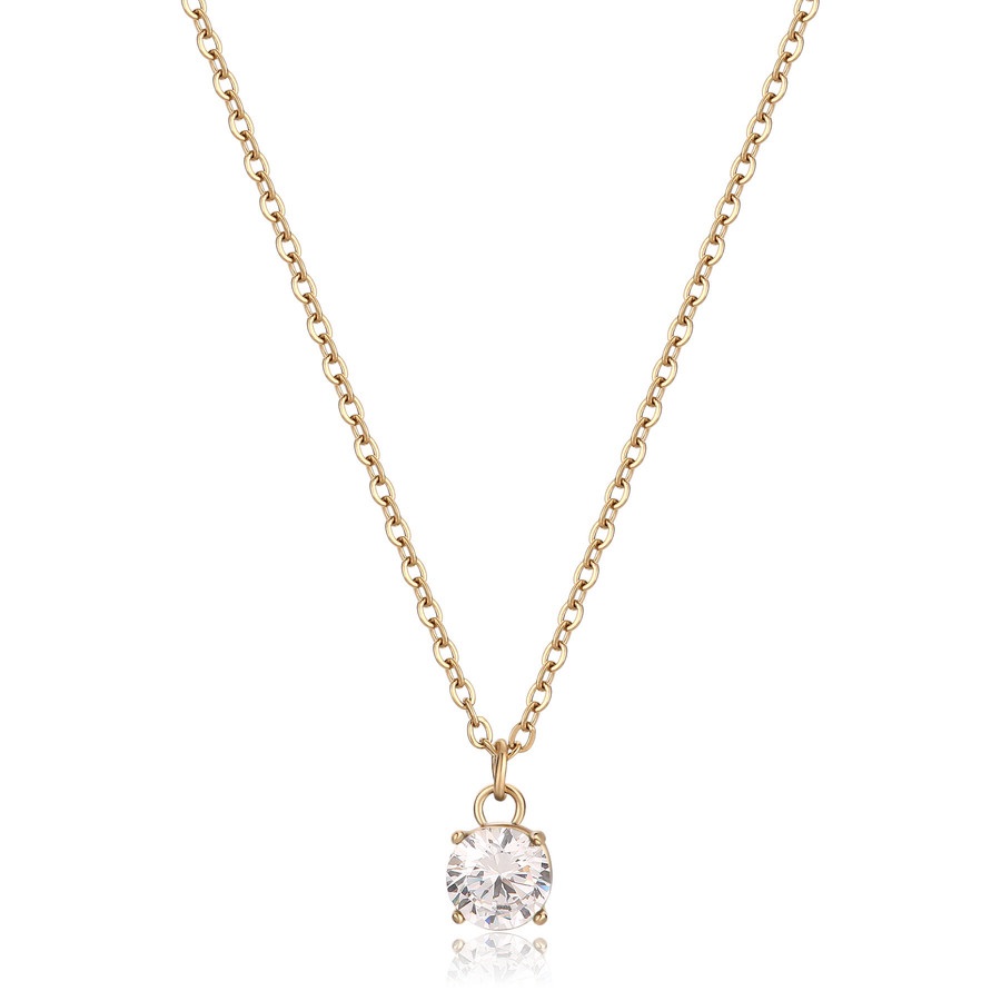 Collana donna sagapò, SDZ07, collezione dazzly, girocollo in acciaio 316L, finitura pvd oro 14K e pendente centrale con cubic zirconia.