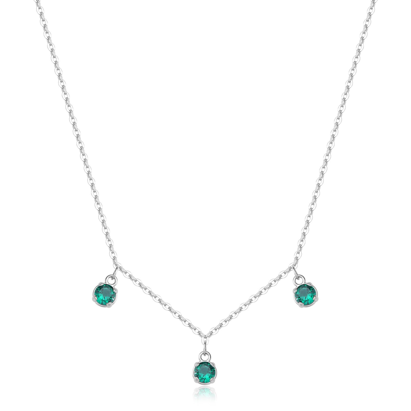 Collana donna sagapò, SDZ144, collezione dazzly, girocollo in acciaio 316L con zirconi pendenti colore smeraldo. lunghezza 45cm.