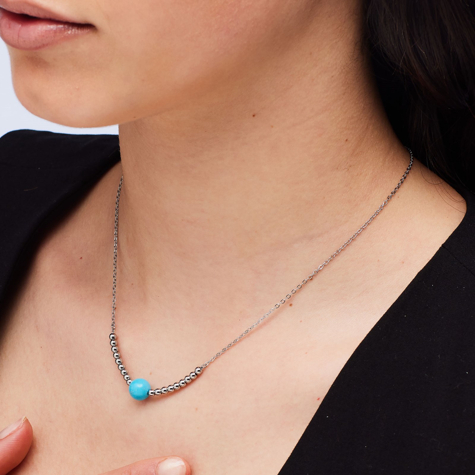 Collana donna s'agapo, SGI05, collezione glint, in acciaio 316L con sfere in acciaio e sfera centrale in turchese ricostruito, misura 44cm
