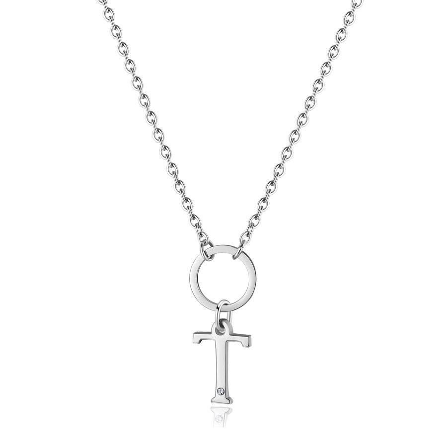 Collana donna s'agapò, Shac83, collezione happy, in acciaio e cristallo, lunghezza 48cm
