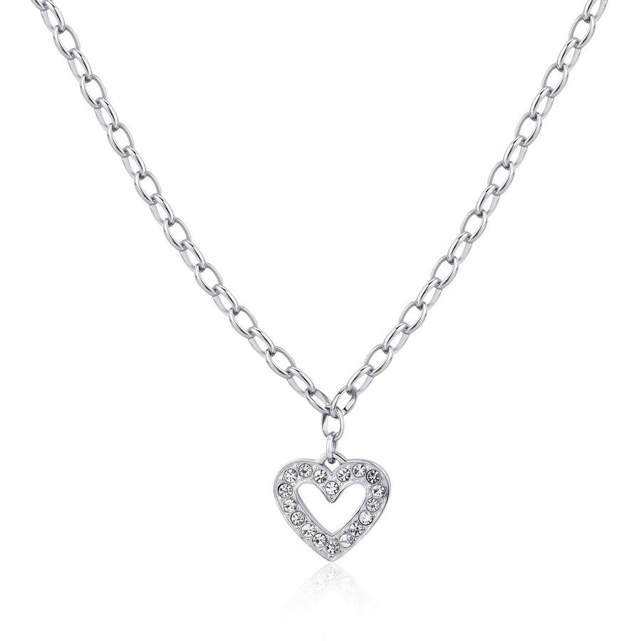 Collana donna s'agapo, SHAR19, collezione happy, in acciaio e cristalli, lunghezza 44cm