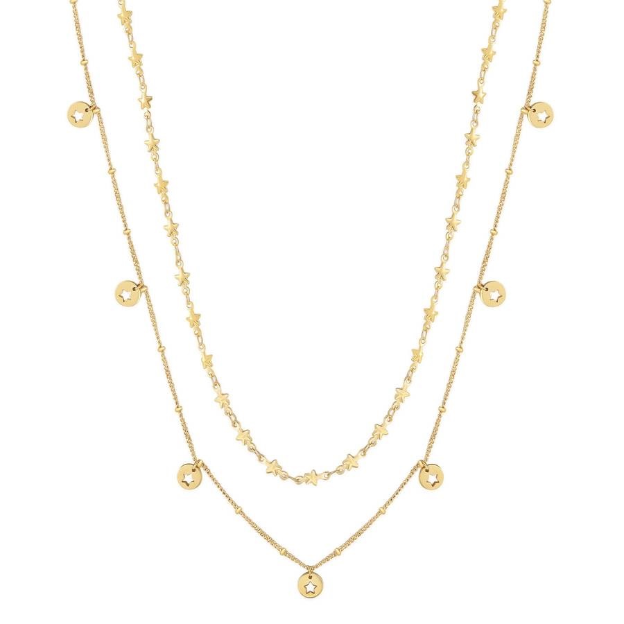 Collana donna s'agapo', Sce20, collezione luce, in acciaio dorato con pendenti, lunghezza 90cm