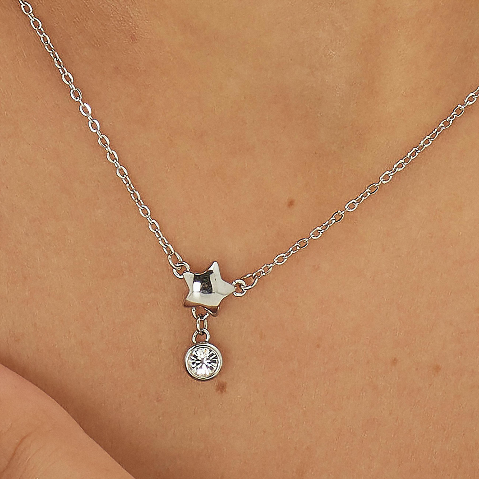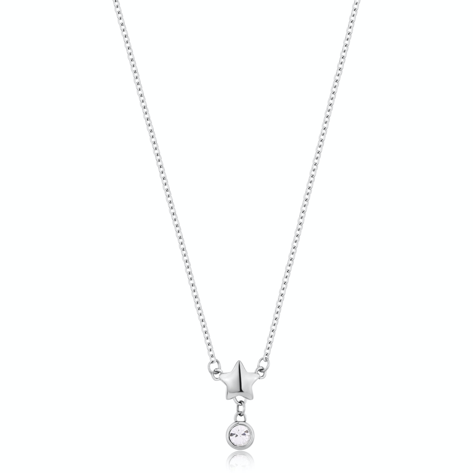 Collana donna sagapò, SCE21, collezione luce, in acciaio con stella e cristallo pendente. lunghezza 44cm.