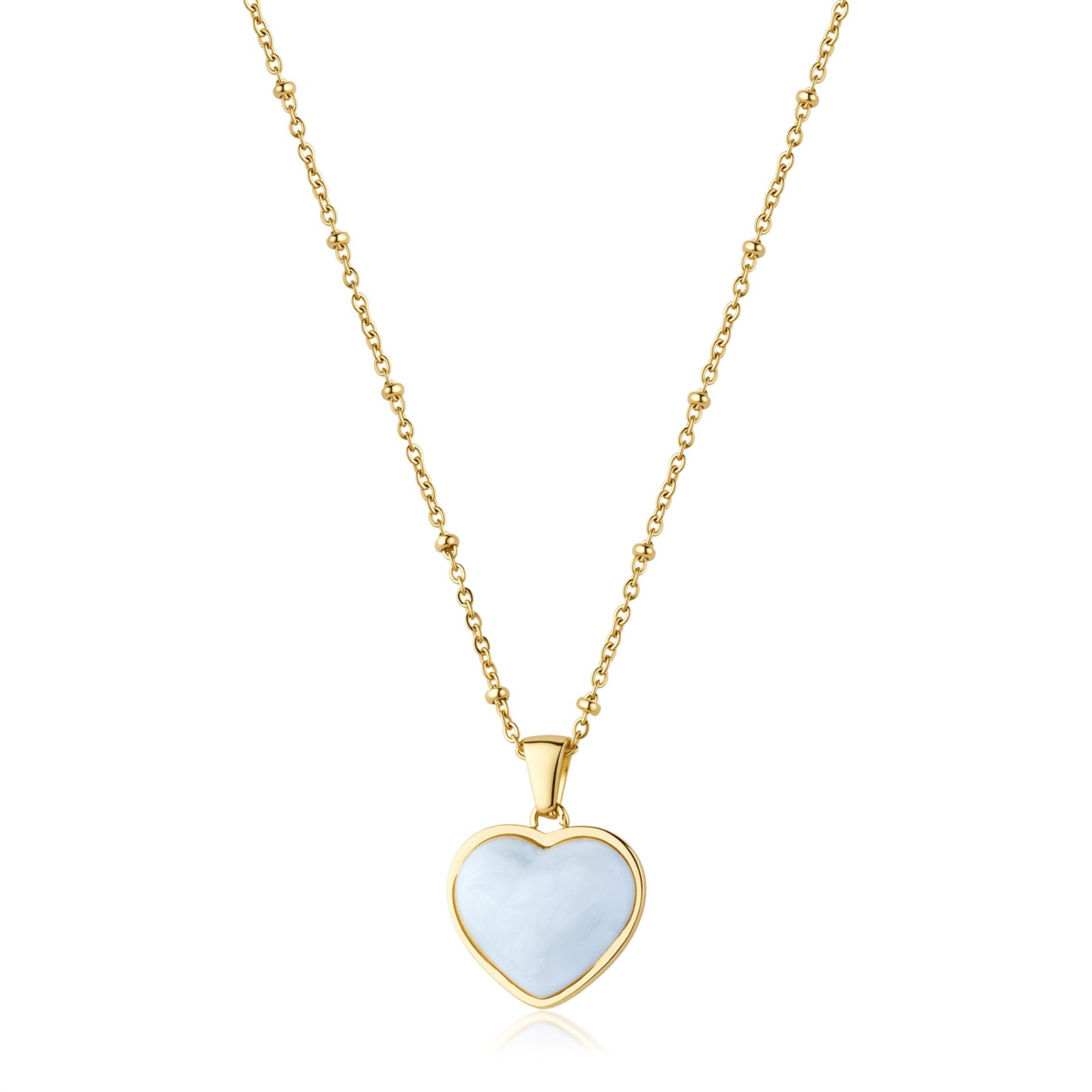 Collana donna sagapò, SDM04, collezione madame, in acciaio 316L e finitura dorata con pendente a cuore e smalto bianco perla.