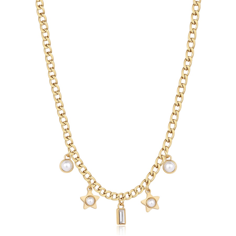 Collana donna s'agapò, Ssg30, collezione message, in acciaio dorato con cristallo, lunghezza 42cm