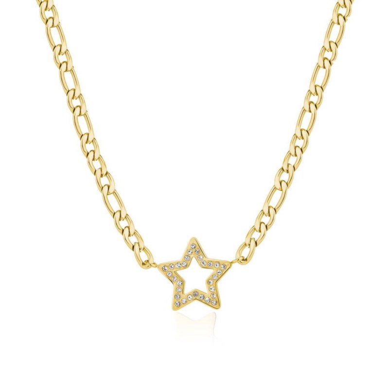 Collana donna s'agapo, SYL06, collezione my love, in acciaio dorato con cristalli, lunghezza 45cm